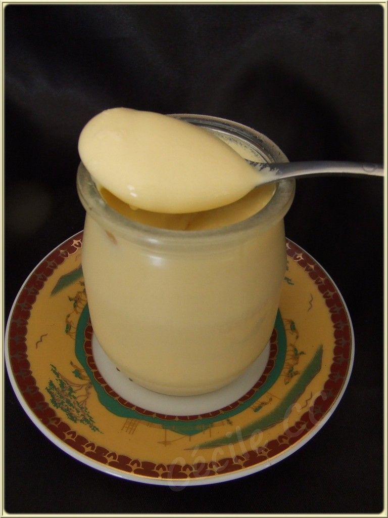 Essai 5 : Yaourt nature légèrement sucré : bon, en pleine réalisation je me suis aperçue que je n'avais pas assez de lait concentré donc j'ai complété avec un peu de lait entier en poudre...